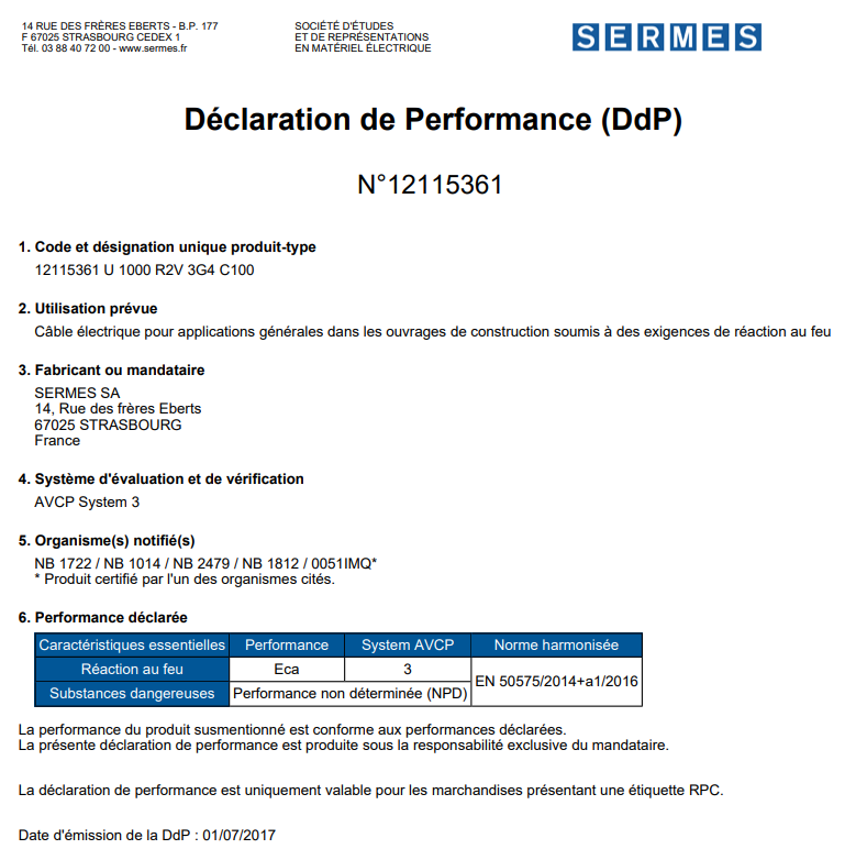 Caractéristiques techniques du câble RO2V Nexans :
